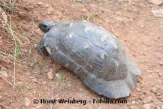 Testudo marginata![]() ![]() Merkmale: • Größe: ca. 32-40 cm/3,5-6 kg • der Carapax ist oval und länglich, der Panzerhinterrand ist stark nach außen gebogenen (Name), in der Panzermitte ist er etwas tailliert, Wachstumsringe sind während der ersten 20 Lebensjahre deutlich zu sehen, die Panzerfarbe ist meistens braun bis schwarz, manchmal sind beige- oder orangefarbene Flecken auf den Areolen vorhanden • das Plastron ist blassgelb mit deutlichen schwarzen Flecken, die einem Dreieck ähneln, es sind weder Oberschenkelsporne noch ein Hornnagel auf der Schwanzspitze vorhanden, beim Männchen ist das Plastron kräftig konkav mit einer Wulst auf dem Xiphiplastron • der Kopf ist grau bis schwarz, die Beine sind stark beschuppt, die Weibchen werden größer als die Männchen Vorkommen: • hauptsächlich in Griechenland, im Süden Albaniens und auf Sardinien sowie in der Toskana • lebt in Hängen bis 1300 m Höhe, aber auch auf Meeresspiegelniveau Haltung: • überwiegend Freilandhaltung mit Schutzhaus, Sonnenplatz und schattenspendenden Gewächsen, sonst mediterrane Haltung, nur in der Übergangszeit (Frühling, Herbst) im geräumigen Frühbeet oder Gewächshaus • tagsüber 28-35 °C, nachts abgesenkt um ca. 10 °C, lokaler Wärmespot ca. 45 °C, Luftfeuchtigkeit von 40-60 % • Mindestanforderungen: Länge=PL x 8, Breite=1/2 der errechneten Länge • vegetarische Ernährung, Gras, Fallobst, selten Aas, Gruppenhaltung empfohlen Vermehrung: • die Paarung ist durch das Randschild hinten nicht ganz einfach, das Männchen beschnuppert erst das Weibchen, Rammstöße, sonst ist die Paarung klassisch, die Eier sind rund und ca. 28 – 32 mm groß, pro Gelege sind es etwa 6-9 Eier, höchstens 15, Eiablage im Mai bis Juni sowie August bis September, Inkubationszeit ca. 65-85 Tage • geschlechtsreif mit etwa 8-12 Jahren bzw. 20 – 22 cm PL (in Menschenobhut) Hibernation: • Winterstarre von etwa November bis Anfang/Mitte März bei 4-6 °C |