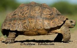 Stigmochelys (Geochelone) pardalis![]() ![]() Merkmale: • Größe: ca. 50-70 cm/20-50 kg • Carapax: cremefarbener Untergrund mit dunkelbraun-schwarzen, unregelmäßig verteilten Flecken (Pantherzeichnung), hoch gewölbt, manchmal mit kegelförmigen Wachstumsringen der Wirbel- und Rippenschilder, Nackenschild fehlt • kegelförmige Sporne auf den Oberschenkeln Vorkommen: • im Osten und Süden Afrikas, besonders in der südlichen Hälfte Sudans bis Namibia sowie im Süden Angolas • lebt in Savannen und Grassteppen sowie im Gebirge der Kap-Provinz Haltung: • im Sommer in einem sehr großzügigen Freilandgehege mit Grasbewuchs und beheizbarer Schutzhütte, im Herbst/Winter in einem separaten Raum/Gewächshaus o. ä. • tagsüber zwischen 28-30 °C, nachts abgesenkt um ca. 10 Grad, lokaler Wärmespot bei ca. 45 °C • Mindestanforderungen: Länge=PL x 8, Breite=1/2 der errechneten Länge • vegetarische Ernährung, vorzugsweise Gräser, trockene Blätter, Sukkulente, Gruppenhaltung empfohlen Vermehrung: • klassische Paarung mit Rammstößen • Eiablage von ca. Mai – Juni sowie Oktober und November, etwa 4-8 Eier und mehr pro Gelege, Eier sind rund und ca. 42 mm groß, Inkubation etwa 110 - 170 Tage Hibernation: • Sommerruhe |