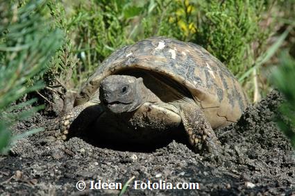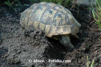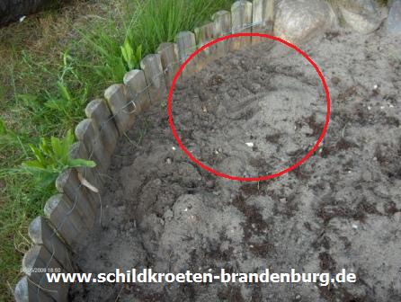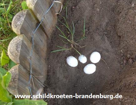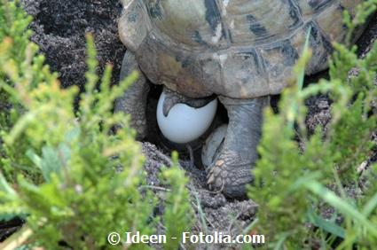 Für die Eiablage sollte in jedem Gehege ein Eiablagehügel vorhanden sein. Lt. Wegehaupt ist dieser bei der Griechischen Landschildkröte nicht unbedingt notwendig, da sie in der Natur ihre Eier vorwie- gend in Senken ablegt, jedoch wird ein Eiablagehügel gern von den Tieren angenommen. Da nicht jeder die Möglichkeit hat die Tiere rund um die Uhr zu beobachten, um genau darauf achten zu können, wann und wo ein Weibchen die Eier abgelegt hat, empfiehlt es sich den Eiablagehügel mit verschiedenfarbigen Substraten zu bestreuen, um bei Veränderungen zu wissen, dass eine Eiablage stattgefunden hat. Ich kenne Halter, die die Eier von ihren Tieren tagelang gesucht haben; oft erfolgreich, manchmal aber auch nicht.