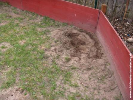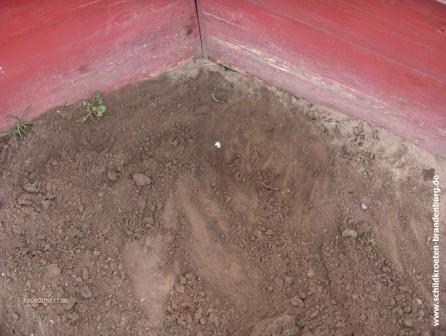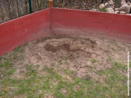 Die Grube ist fast fertig ausgehoben, die Füße berühren kaum noch den Grubengrund.