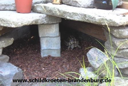 Auch im Freiland werden Verstecke benötigt, damit sich die Tiere bei extremer Hitze oder auch bei einem Schauer Unterschlupf finden. Empfehlen kann ich Korkröhren, halbierte Tontöpfe und PVC-Rohr sowie selbstgebaute (einsturzsichere) Steinhöhlen.