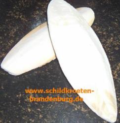 Lediglich sollte unseren Schildkröten Kalzium - jedoch nur zur freien Verfügung - zugeführt werden. Die beste und natürlichste Art, um den Bedarf an Kalzium zu decken, ist die Gabe von Sepiaschalen. Sepiaschalen sind die Rückenplatten (Skelettplatten) der Tintenfische, die aus Kalk bestehen. Diese verteilt man einfach im Freigehege. Unsere Schildkröten bedienen sich daran je nach Bedarf selbst.