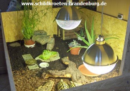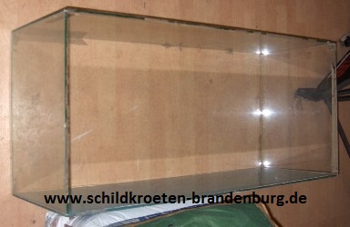 Immer wieder ist zu hören, dass viele Schildkrötenhalter ihre Tiere in einem Terrarium aus Glas halten, wie es im Handel angeboten wird. Dies sind ganz normale Terrarien, die aber relativ klein sind, enorm teuer und völlig ungeeignet! Die kleinsten Terrarien von ca. 100x50x50 kosten ungefähr 120 € und mehr. Desweiteren eignen sich diese Terrarien aus Glas für Schildkröten überhaupt nicht. Schildkröten erkennen keine transparenten Flächen und es wird oft davon berichtet, dass einige Tiere apathisch am Glas auf und ab laufen. Sie erkennen diese „Grenze“ nicht. Hinzu kommt, dass oft Panzerab- schürfungen an den Randschilden sowie völlig abgenutzte Krallen (vom Kratzen am Glas) zu erkennen sind. Weiterhin sind Glasterrarien komplett geschlossen und es ist nicht möglich verschiedene Temperaturzonen einzurichten. Außerdem ist keine ausreichende Belüftung vorhanden. Die Befestigung von Technik ist schwierig und das Bodensubstrat trocknet viel zu schnell aus, was dann zur Höckerbildung führen kann. Ein Terrarium für Schildkröten muss oben offen sein. Leider muss ich wieder auf die teilweise falsche Beratung im Zoofachgeschäft hinweisen, wobei gern geschlossene Terrarien als ideale Unterkunft empfohlen und dann auch gekauft werden. Nicht umsonst sind viele Schildkröten aus Terrariumhaltung höckrig und überfettet – man nennt sie auch „Dampfaufzuchten“. Deshalb kann ich von einem herkömmlichen Terrarium für europäische Schildkröten nur abraten. Anders ist es bei Steppen-, Savannen- und Tropenbewohner, wobei diese Behältnisse bei der zu erreichenden Endgröße auf Dauer viel zu klein sind.