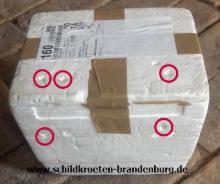 Die beste Zeit, um eine Schildkröte zu kaufen, ist das Frühjahr. Um bei dem Transport keinen Fehler zu machen, empfehle ich eine Styroporkiste, die man auch in einer Zoohandlung günstig wenn nicht sogar umsonst erwerben kann. In diesen Styroporkisten werden oftmals Fische sowie Frostware transportiert. Styropor schützt also vor Kälte als auch vor Hitze.